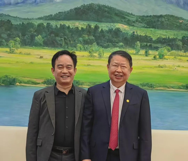 2025年12月31日,记者与陈景河(右)在紫金矿业总部