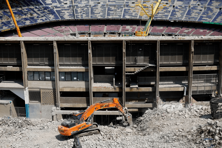 在翻修期间,巴萨经历了数月“寄人篱下”的时光,其中一座球场甚至只有6000个座位。球队已于去年11月重返更名为“声破天诺坎普”的主场,但在问题重重的重建项目完成之前,入场人数被限制在10.5万总容量的一半以下。巴萨债务的核心部分,是为球场翻修筹集的15亿欧元长期融资,此外则是拉波尔塔为保持球队竞争力、不惜代价引进世界级球员所产生的投入。