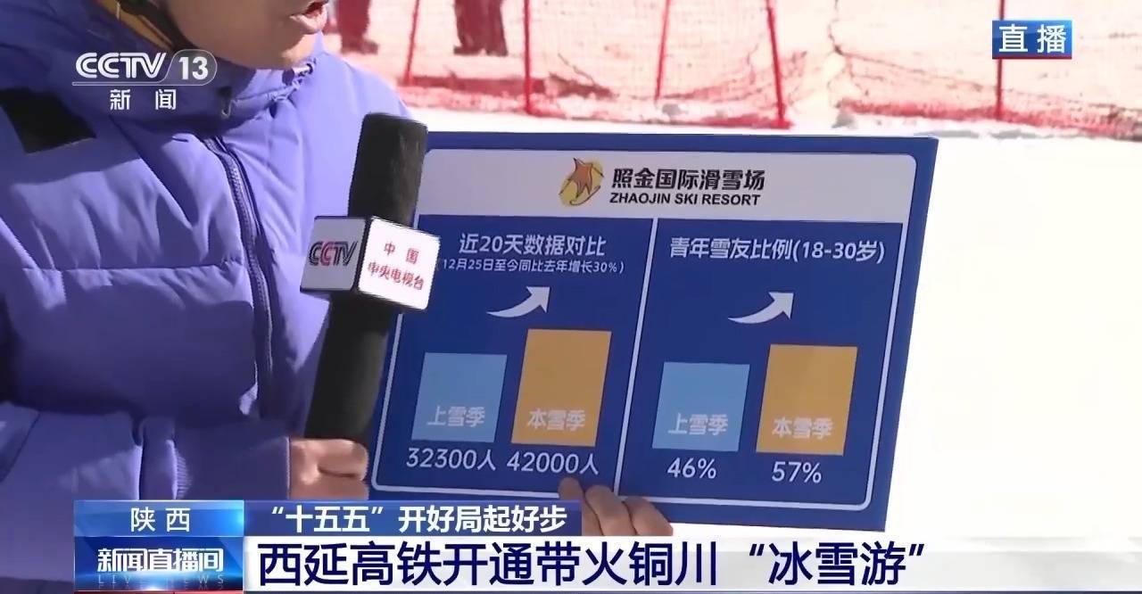 据了解,对比上个雪季,滑雪场客流增幅达30%,其中青年雪友的比例超过10%。自2025年12月开板以来,照金滑雪场累计接待游客突破5万人次,日均接待游客5000人次,单日接待高峰超过了6000人次。